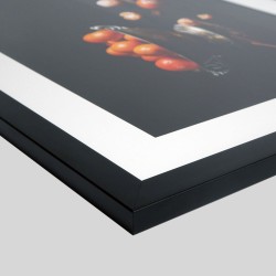 Votre tirage contrecollé sur aluminium Dibond est montée dans un cadre en bois noir avec un passe-partout blanc cassé au ph neutre.