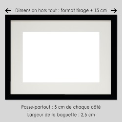 Ex : une photo 20x30cm > 30x40cm hors baguette du cadre.