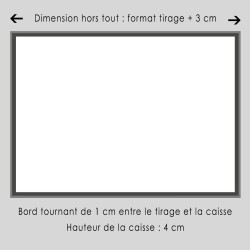 L'élégance au naturel ! Cet encadrement chêne naturel viendra placer votre œuvre au coeur de la nature. Un écrin de belle facture, une valeur sure ! Les dimensions : Le tirage contrecollé est placé dans la caisse de façon à laisser une marge tournante d’1 cm autour du Dibond pour rendre l’effet ‘flottant’ souhaité.